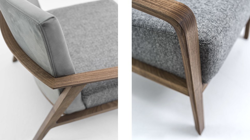 An armchair with a solid wood structure; its lines give life to a relaxed and informal chair. The expert carpentry brings out all the qualities of a material that is natural and alive – pleasant to look at, and to the touch.